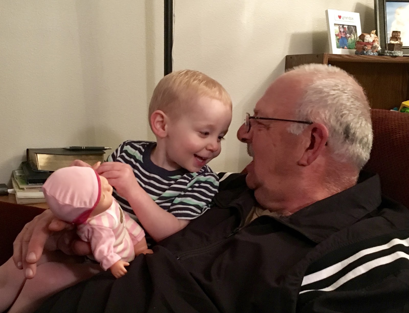 We got a baby doll for Kam, thinking it would be a fun thing especially with a new baby coming to the family. He enjoys it greatly, frequently pointing out her hands, ears, nose, etc.