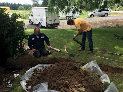 And there's my brother Dave, trimming one of the many trees he attacked that day.Brother Doug working on some drain pipe issues, assisted by my niece Jewel's husband Steve.